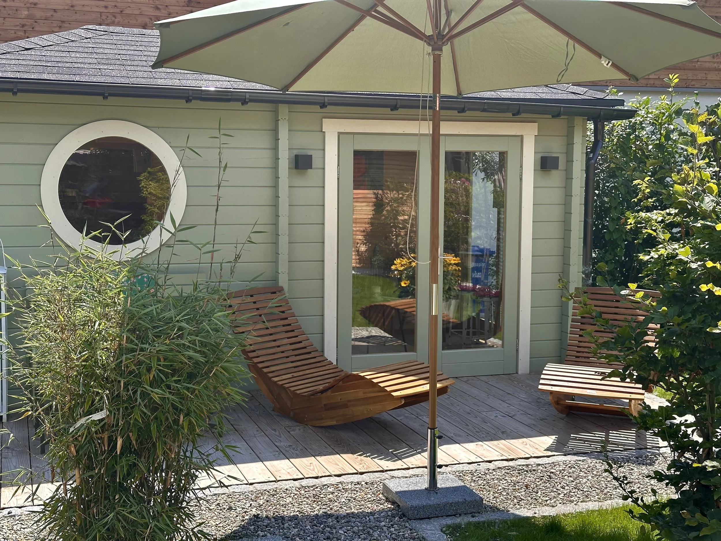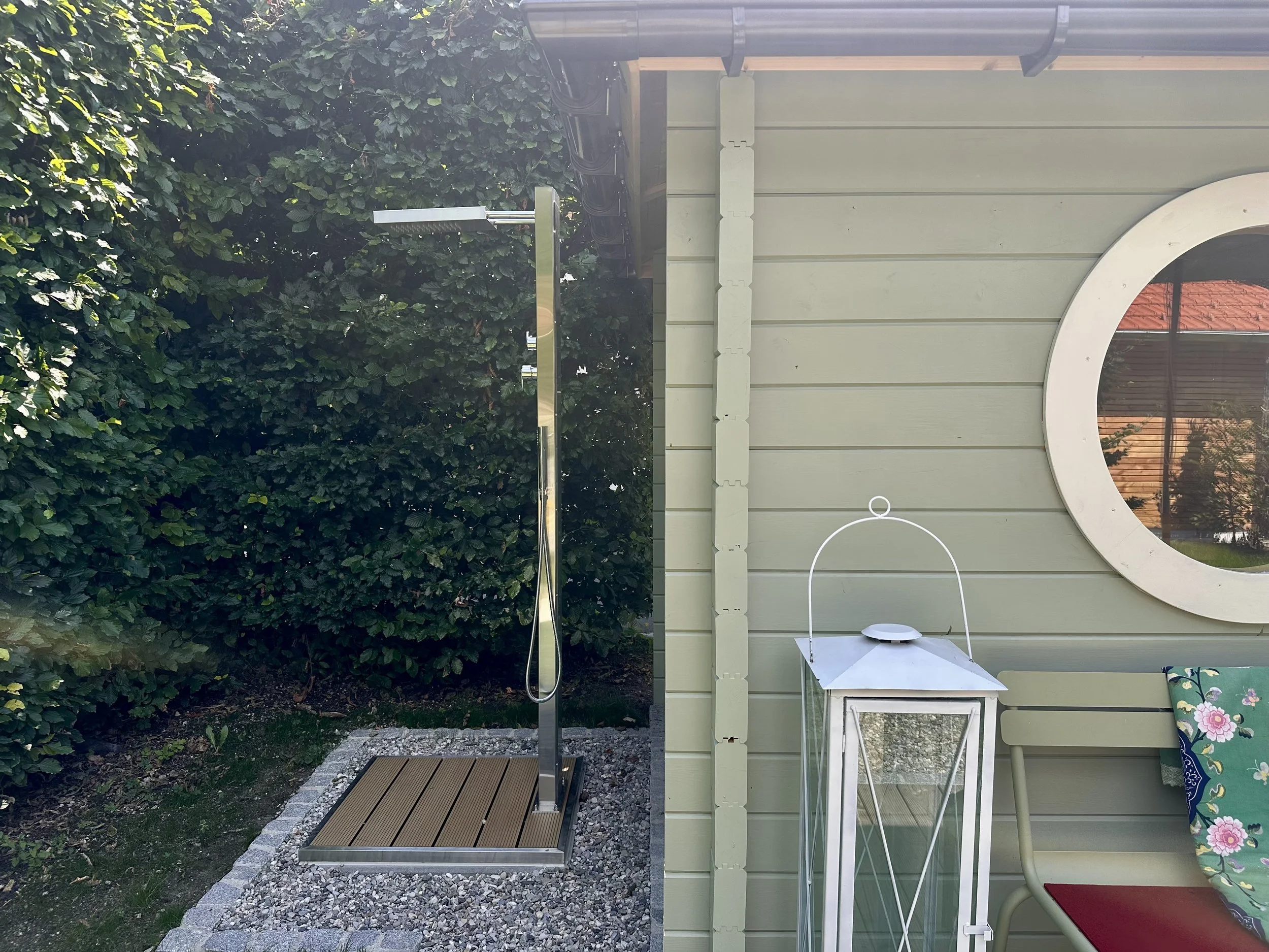 Es erwartet Sie ein attraktiver Gartenbereich mit geräumiger Außensauna, Ruheraum und einer Warm- und Kaltwasser Regendusche unter freiem Himmel. Perfekt für einen erholsamen und gesunden Urlaubstag.